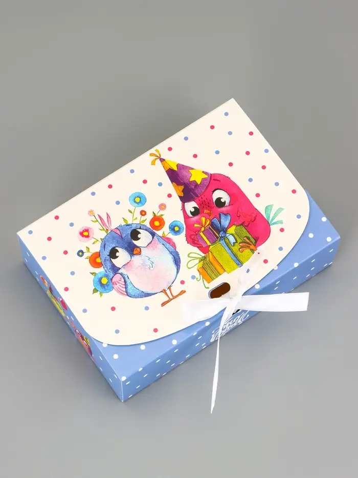 Быстрое создание праздничной истории: Эта коробка решает задачу моментальной и эффектной упаковки. Её дизайн сам рассказывает историю праздника, избавляя от необходимости искать открытки или отдельную обёртку. Это идеальный выбор, когда нужно красиво преподнести небольшой сюрприз, не тратя на подготовку много времени.