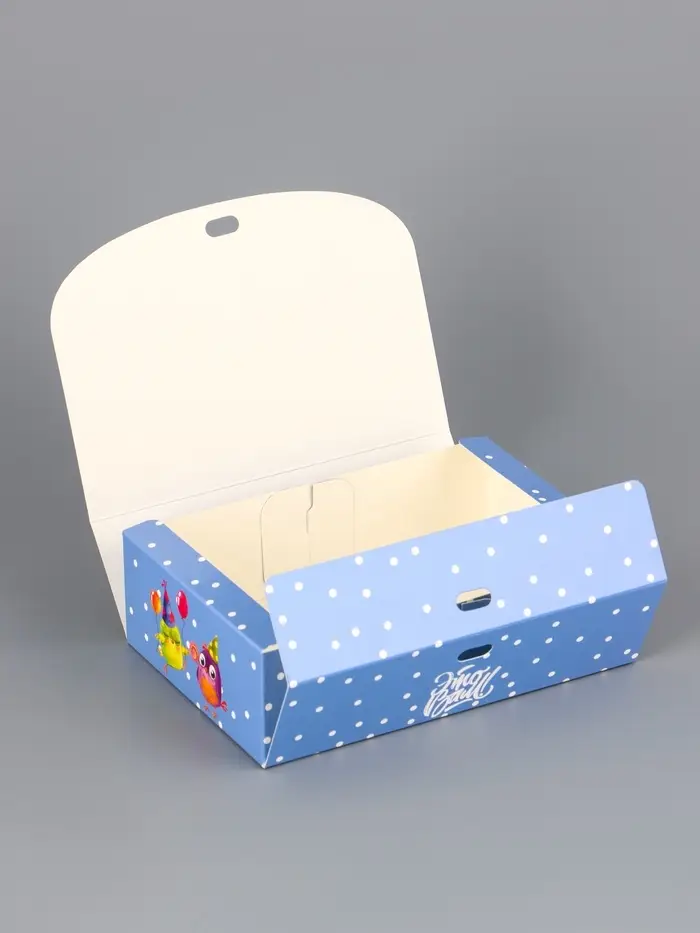 - Практичность и экономия места: Коробка поставляется в плоском виде, что удобно для хранения. Сборка занимает минуты и не требует дополнительных материалов — детали надёжно фиксируются по линиям сгиба.