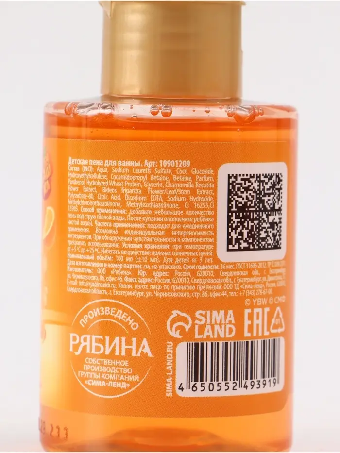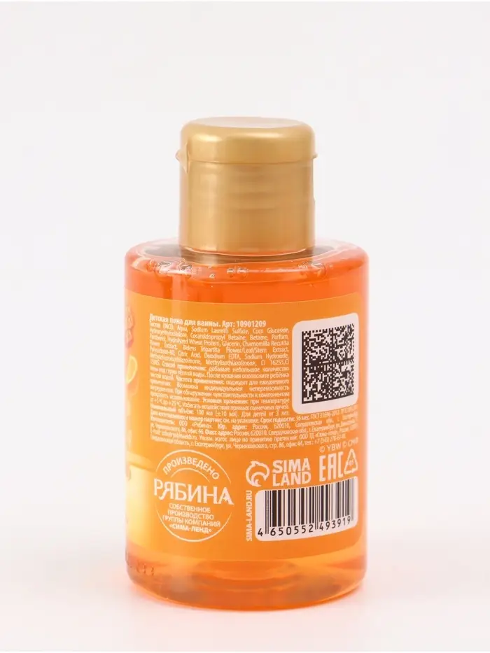 Детская пена для ванны, аромат апельсиновый переполох, 100 мл, Чебурашка