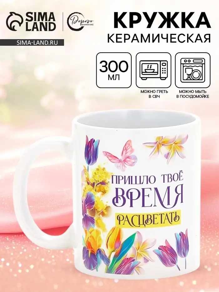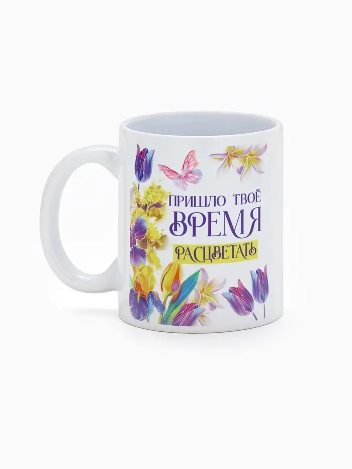 Керамическая кружка «Время расцветать» — не пафосное признание и не шаблонный комплимент, а тихое, вдумчивое напоминание: быть прекрасной — не про внешность, а про способность оставаться собой, даже когда день идёт наперекосяк.