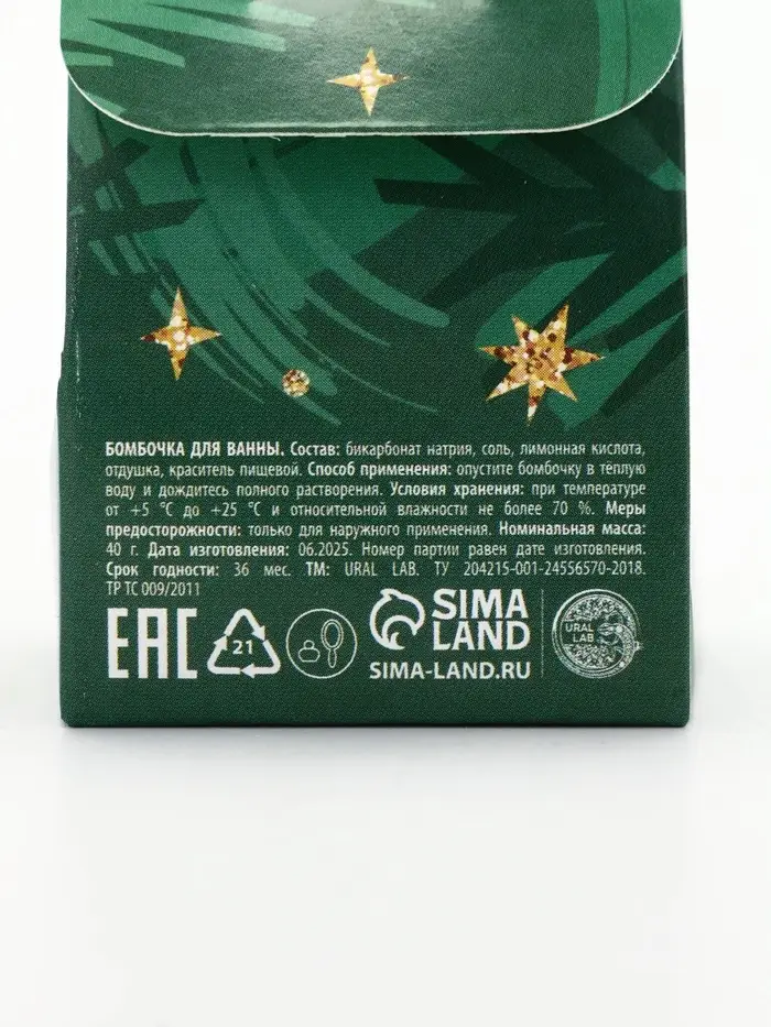 Бомбочка для ванны Winter holidays, 40 гр, еловый аромат, Ural Lab