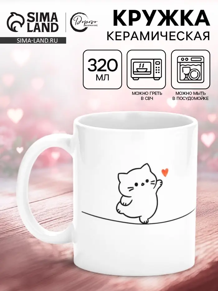 - Прочность и долговечность: кружка изготовлена из качественной керамики, которая не царапается и не бьётся при падении.