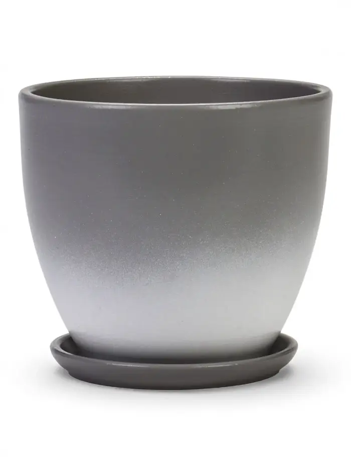 Горшок цветочный с поддоном 1,4 л, d15/h13 см серый керамика, "Туман" (М)