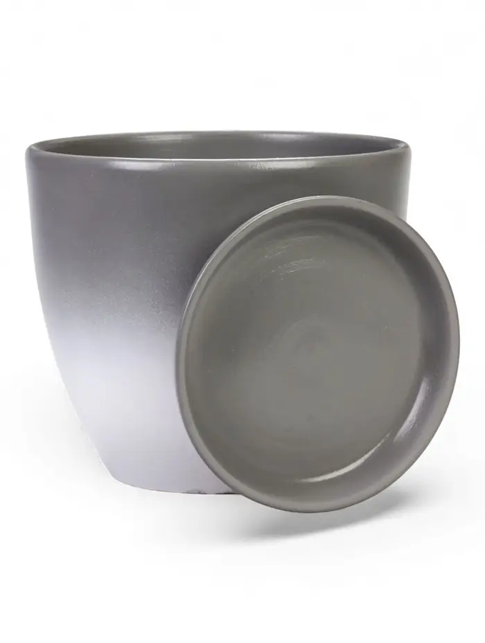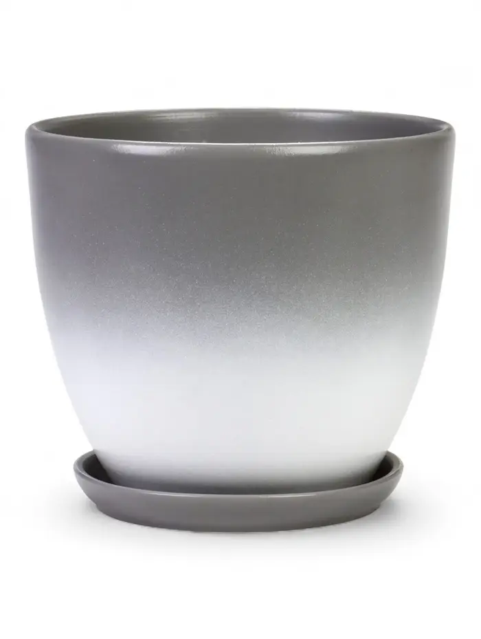 Горшок цветочный с поддоном 5 л, d122/h19,5 см серый керамика, "Туман" (М)