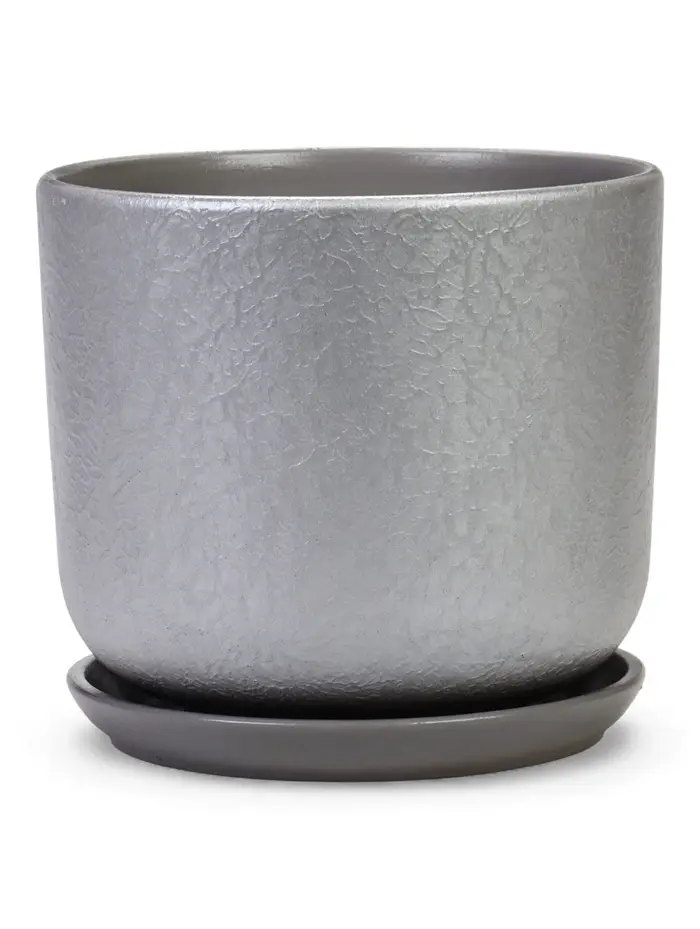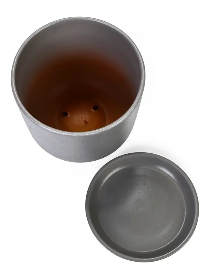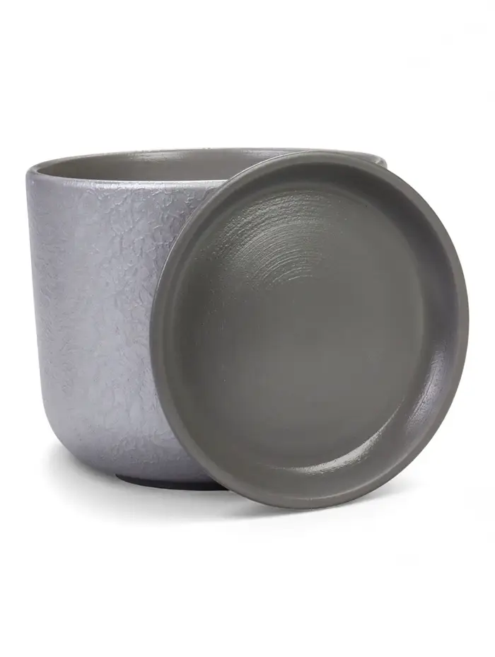 Горшок цветочный с поддоном 5,4 л, d22/h19 см серый керамика, "Перл" (М)