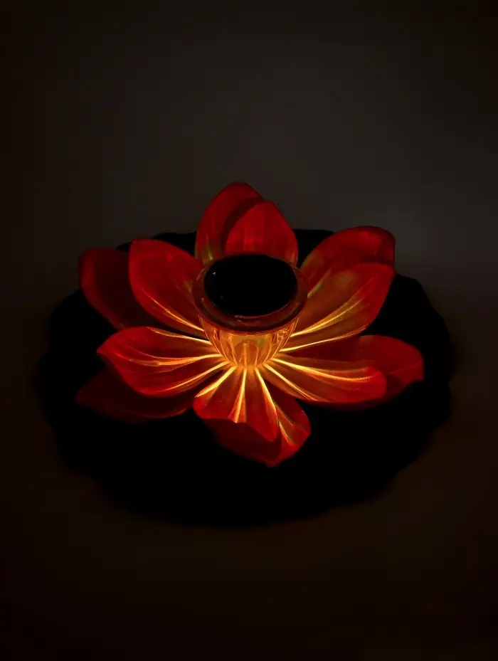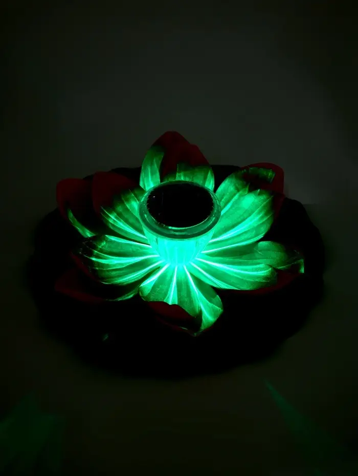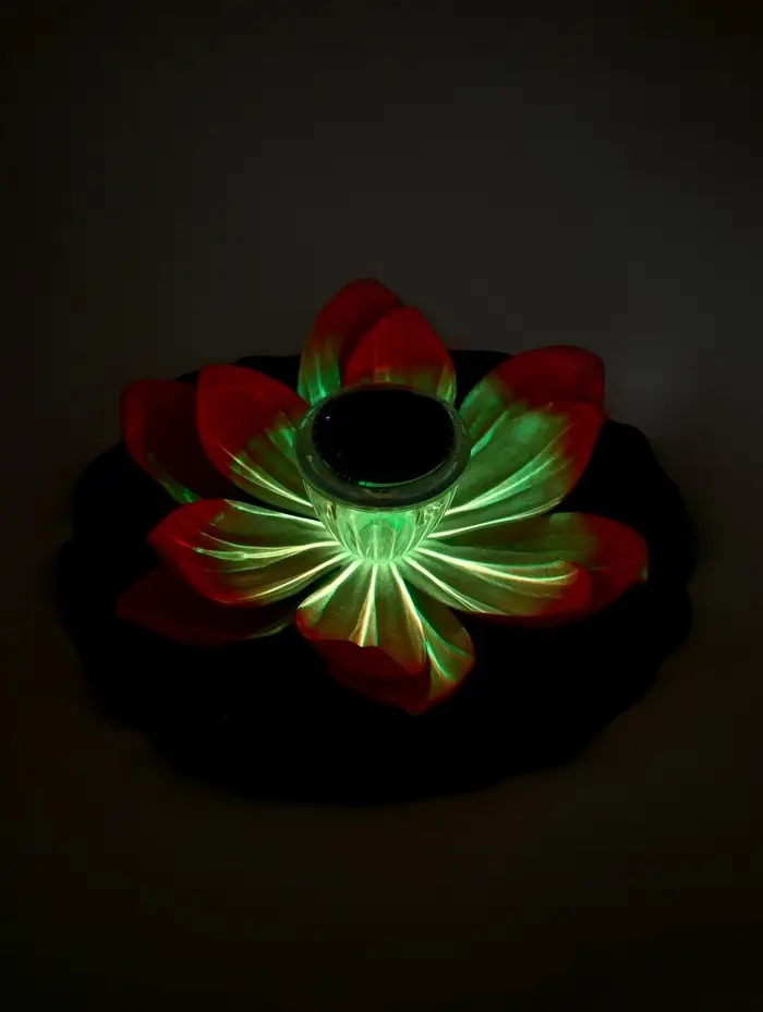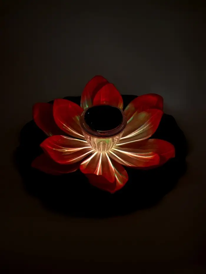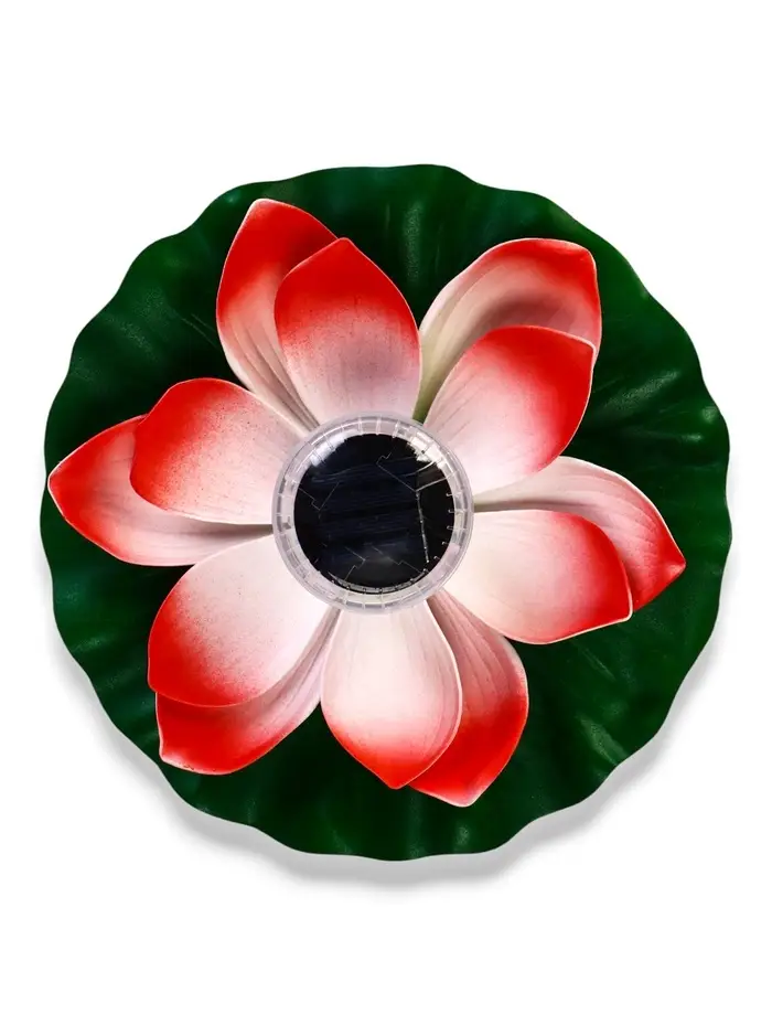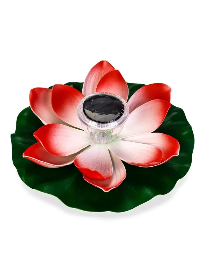Садовый светильник для водоемов 28 х 28 х 9 см на солнечной бат-е "Лотос" красный N008