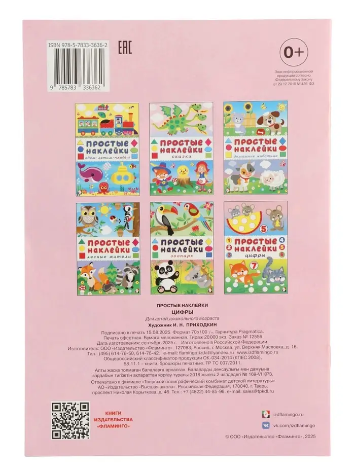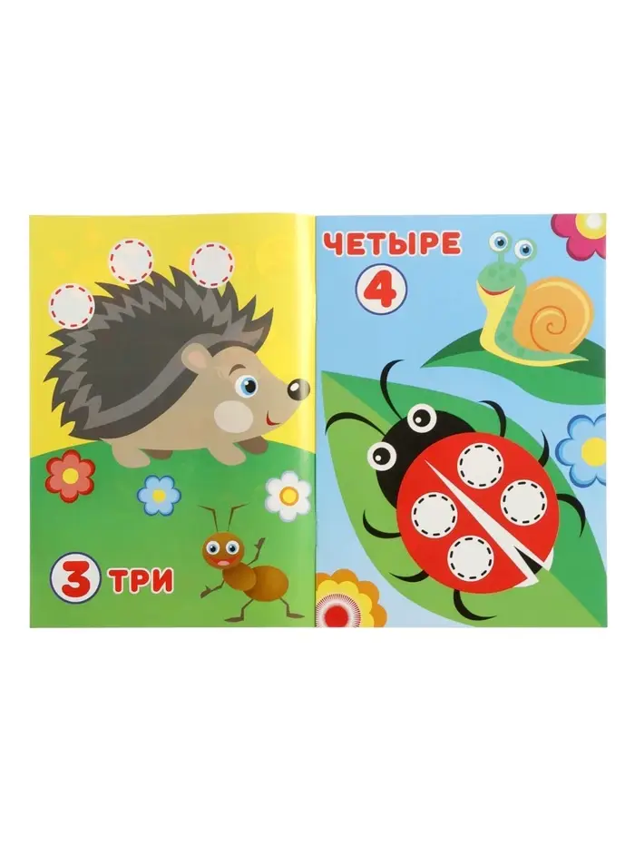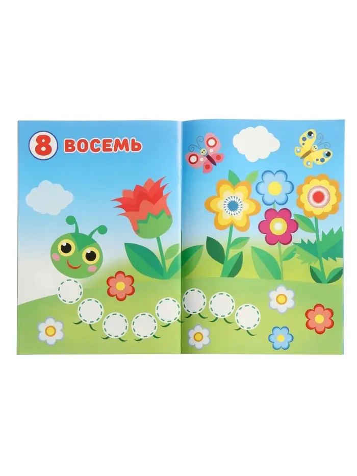 Эта книжка учит считать не через заучивание, а через игру. Ребёнок не читает — он приклеивает.