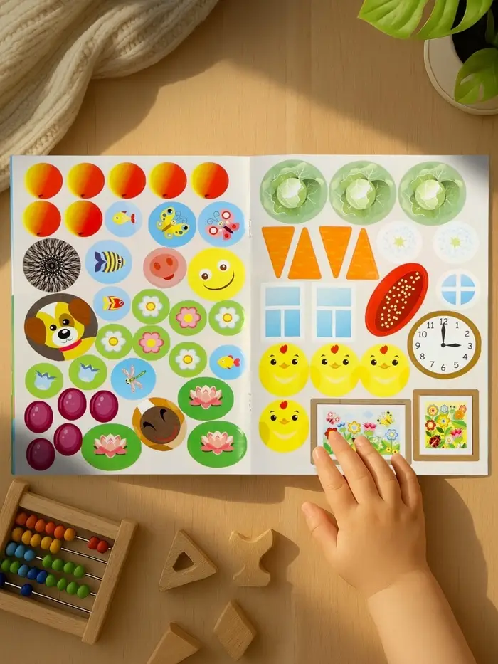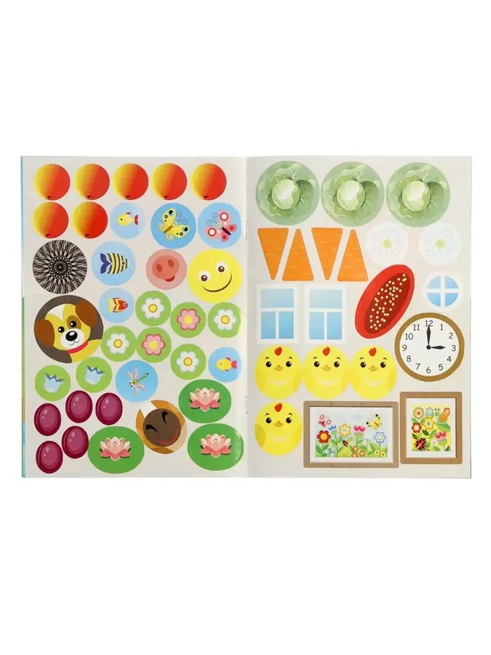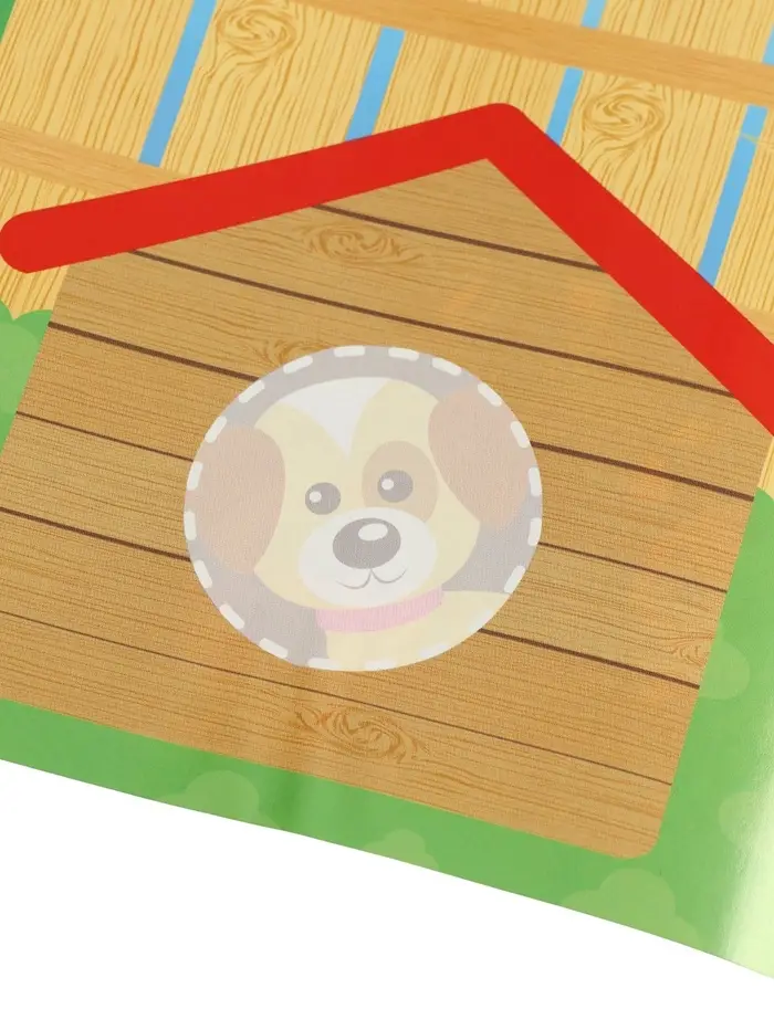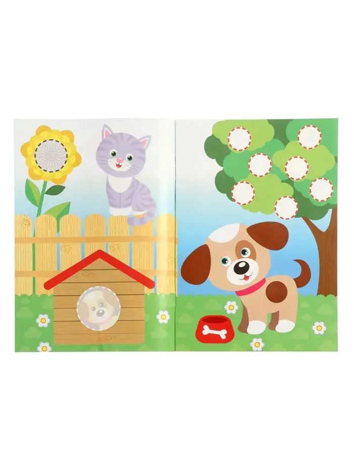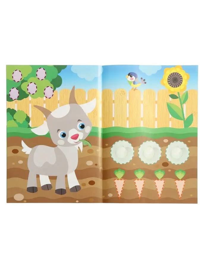 Здесь нет текста — только картинки и наклейки. Ребёнок не читает, а узнаёт: кто живёт в будке, кто на ферме, кто ест морковку. Каждая страница — как маленький мир: нужно найти место каждой наклейке.
