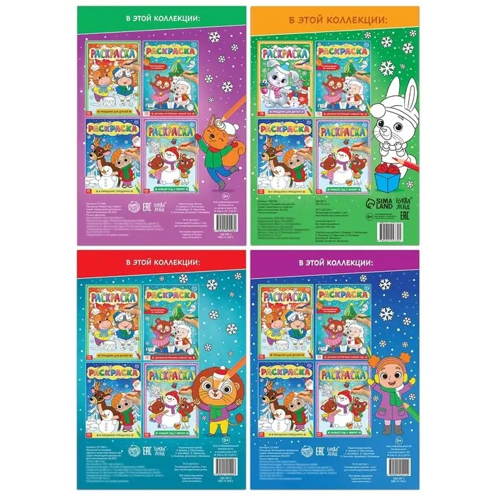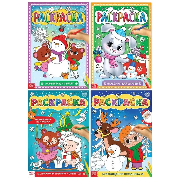 Раскраски новогодние «Любимый Новый год», набор 4 шт. по 16 стр., формат А4