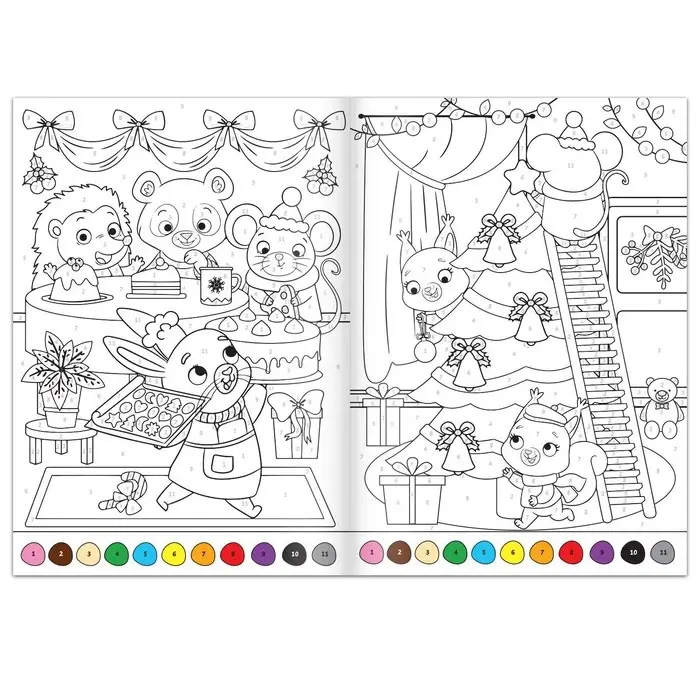 Раскраски помогут скрасить зимние вечера, создавая яркие картинки. Раскрашивайте их вместе с ребёнком и украшайте дом к Новому году!