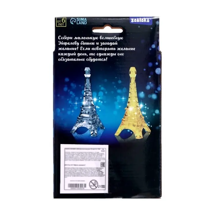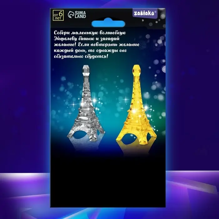 3D пазл «Эйфелева башня», кристаллический, 10 деталей, цвета МИКС