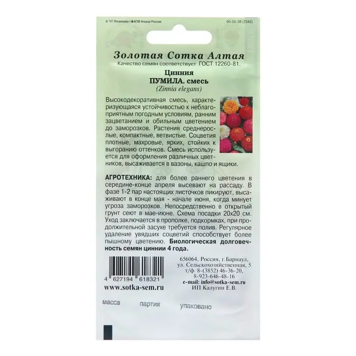 Семена цветов Цинния Захара "Северная звезда", 5 шт