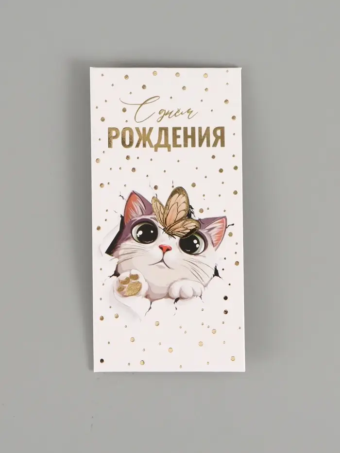 Конверт для денег «Котик», тиснение, 16,5 х 8 см
