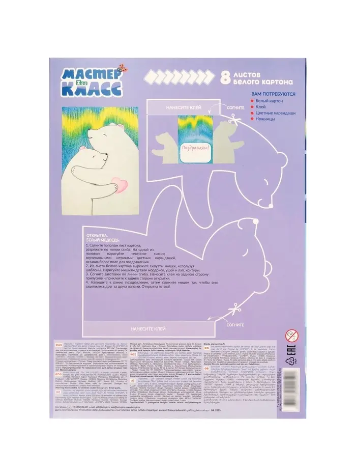 Картон белый А4 8л немел одност 220г/м² Луч. Zoo (Белый медведь)