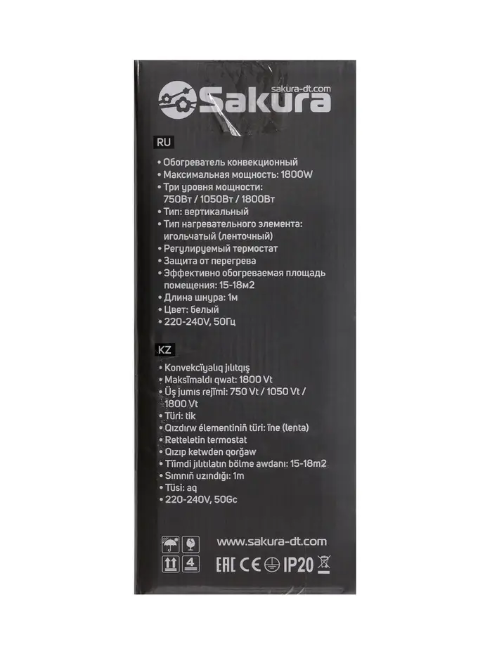 Конвектор электрический Sakura SA-0653W, 1800 Вт, до 18 м², напольный, механический термостат
