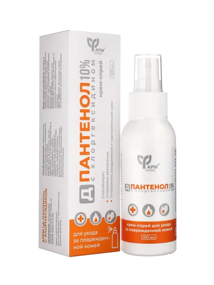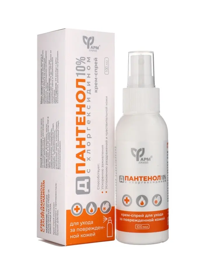 Д-пантенол, 10% с хлоргексидином, крем-спрей, 100 мл
