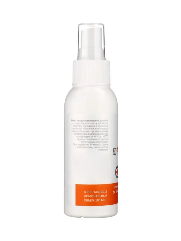 Флакон-спрей 100 мл — компактный, удобный в использовании и легко помещается в сумку, аптечку или дорожный набор.