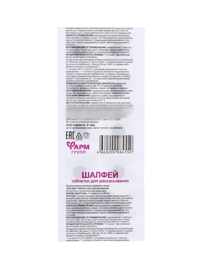 Шалфей, таблетки для рассасывания, 10 таблеток по 0,5 г