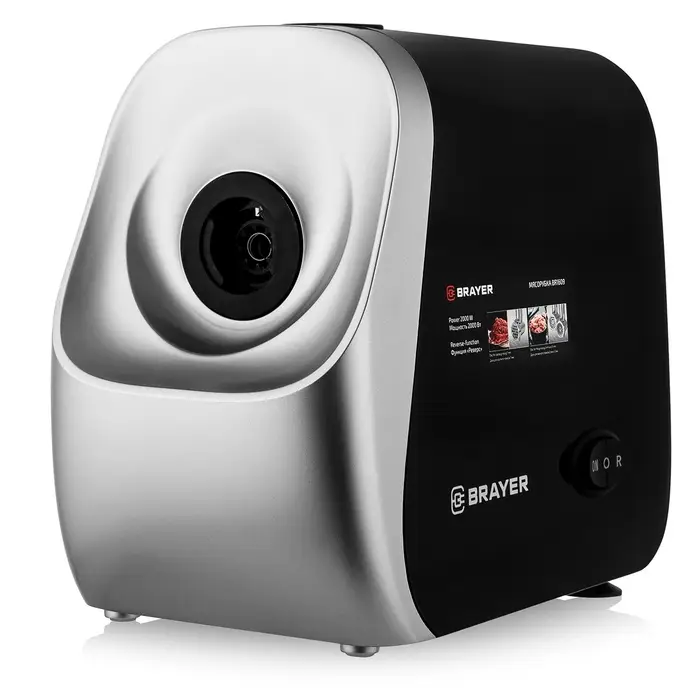 Мясорубка BRAYER 1608BR, электрическая, 2000 Вт, реверс, 3 диска, 4 насадки, 2 кг/мин