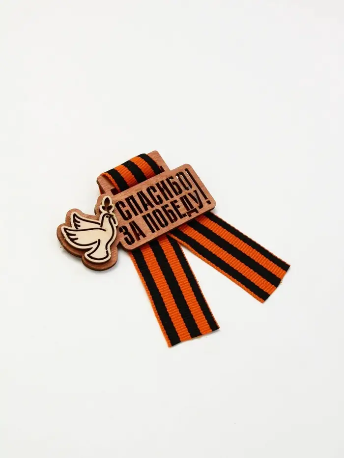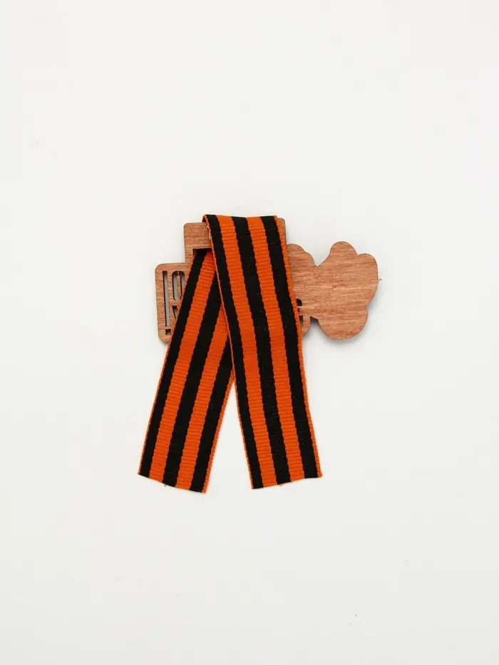 Значок деревянный с георгиевской лентой «9 мая»
