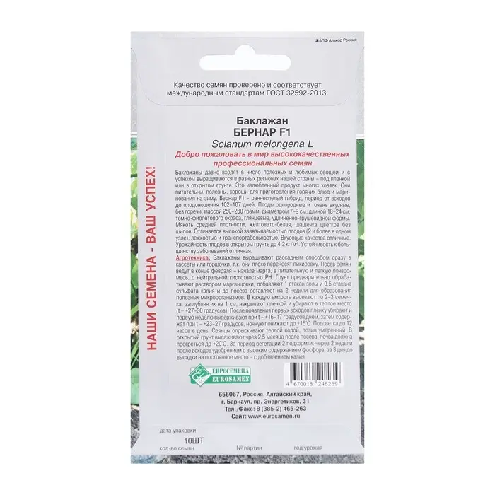 Семена Баклажан "Алёшка", F1, скороспелый, 0,05 г