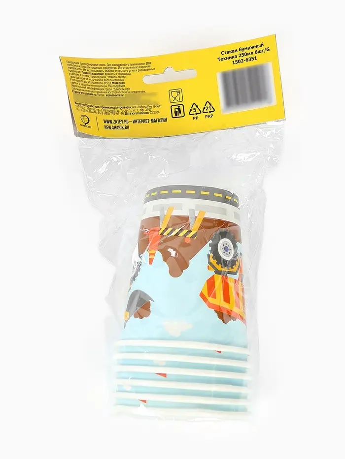 Стакан бумажный одноразовый «Техника», 250 мл, 6 шт