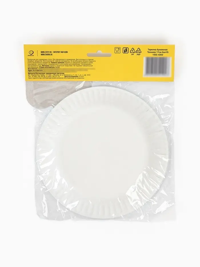 Тарелка одноразовая бумажная «Техника», 17см, 6 шт