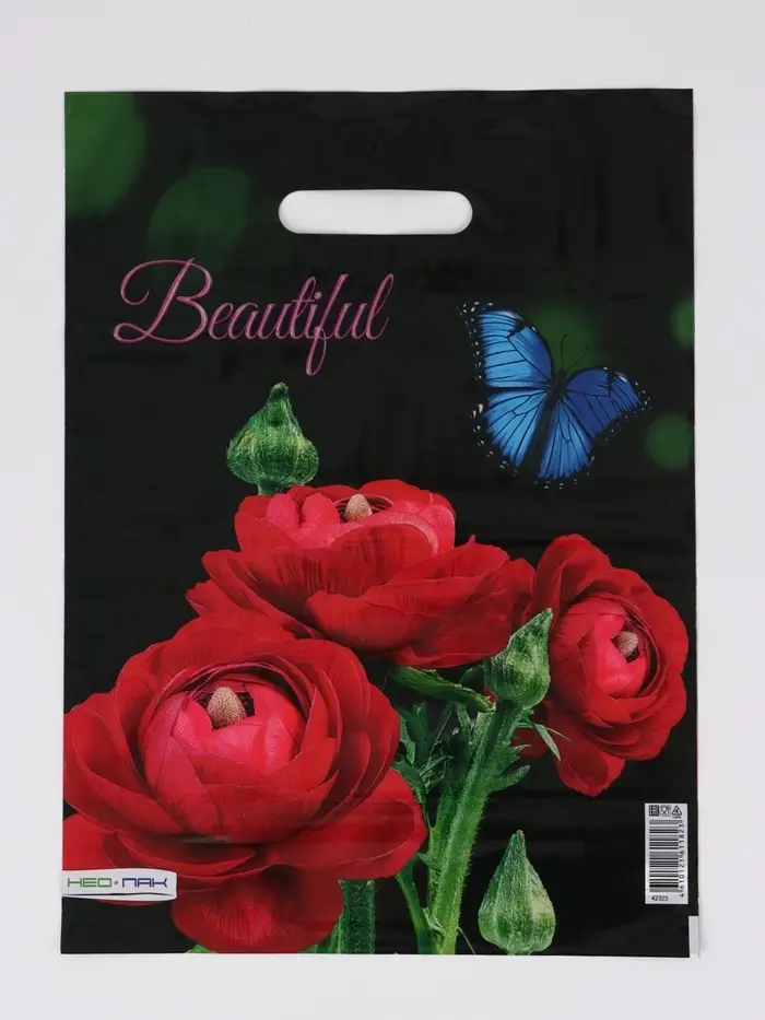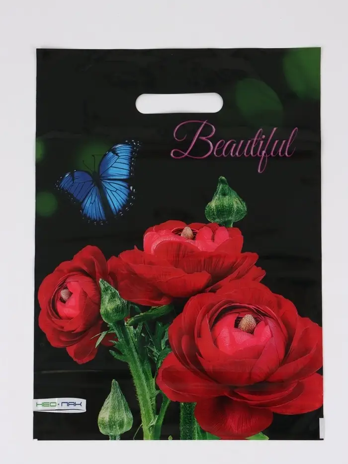 Пакет "Прекрасный букет , полиэтиленовый с вырубной ручкой 30х40 см, 60 мкм
