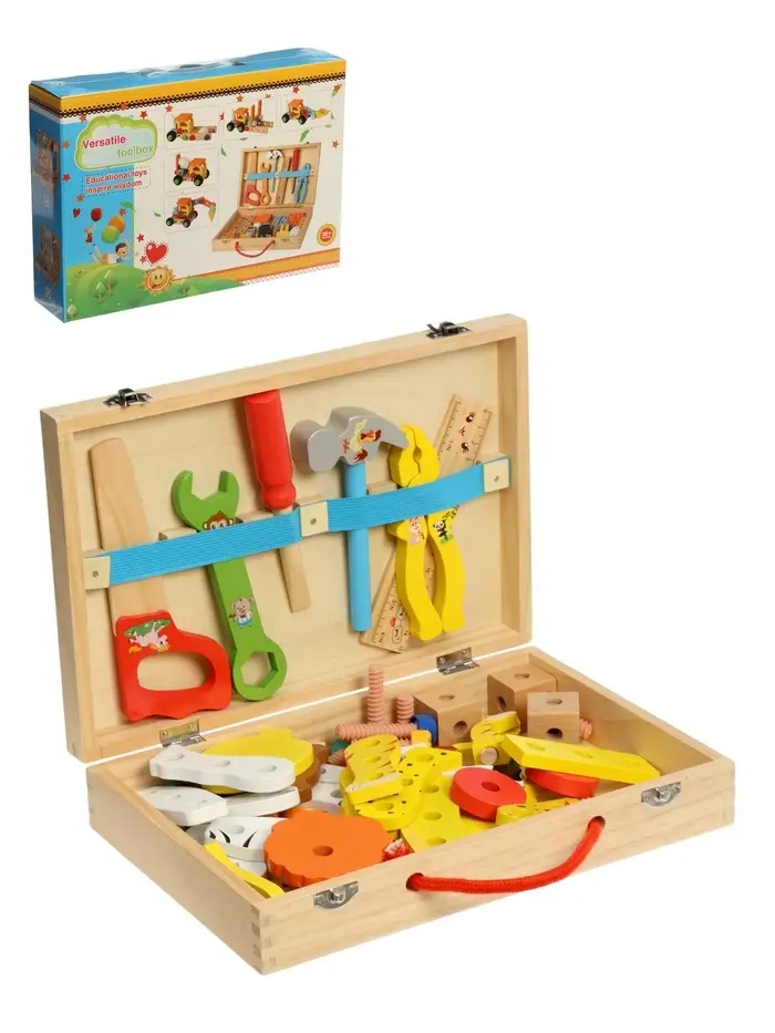 Набор инструментов детский "Собери животных", деревянный конструктор