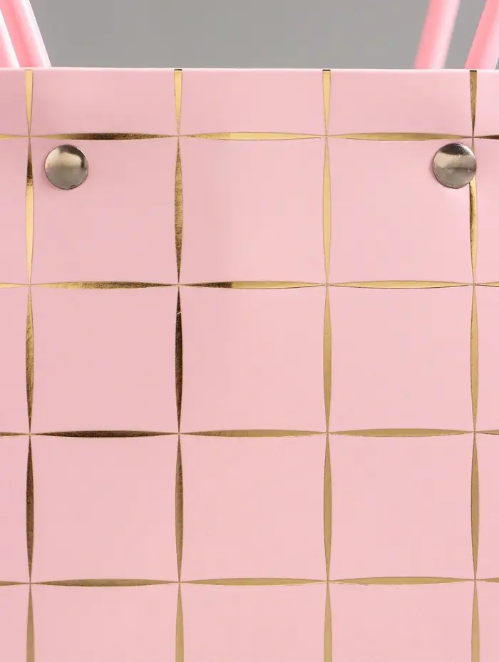 - Нежный декоративный вид: Мягкий розовый цвет с тиснением выглядит нарядно и трогательно. Сумка дополняет образ подарка, делая его более женственным и целостным.