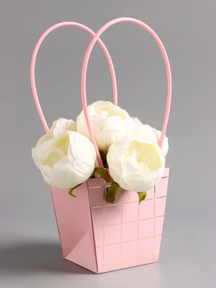Идеальный спутник для небольшого сюрприза: Эта сумка превращает заботу о сохранности букета в красивый жест. Она показывает внимание к деталям и подходит для спонтанных или запланированных подарков. Выбирайте розовую переноску для аккуратного и стильного оформления вашего букета.