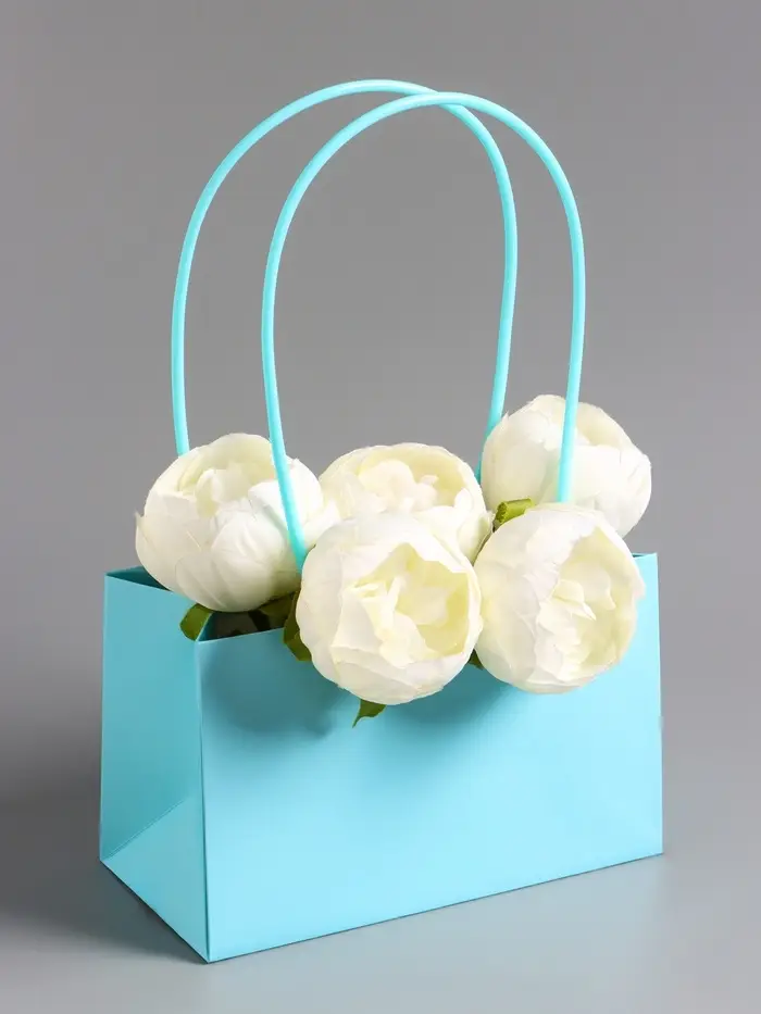 Элегантный штрих для особого момента: Эта сумка демонстрирует, что подарок подготовлен с особым вниманием. Она сочетает в себе практическую пользу и стильный внешний вид. Выбирайте переноску цвета «Тиффани», чтобы дарить цветы с чувством стиля и заботой о мелочах.