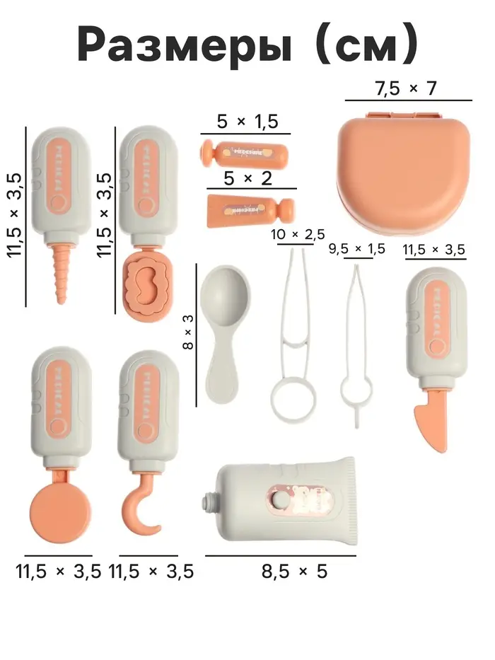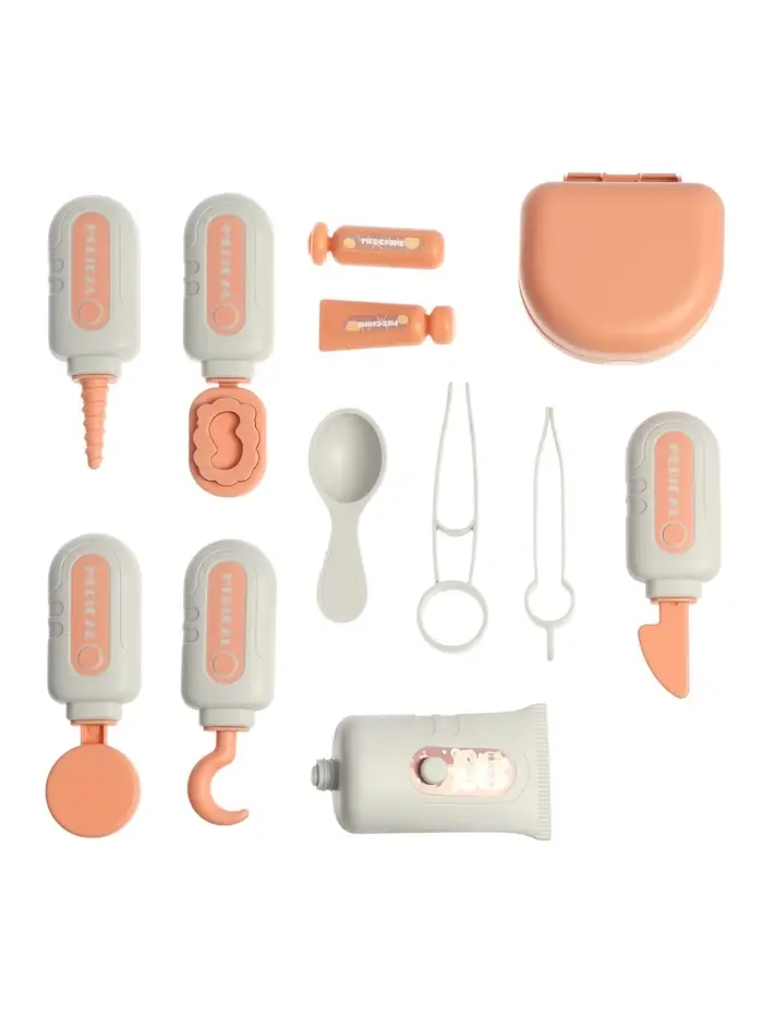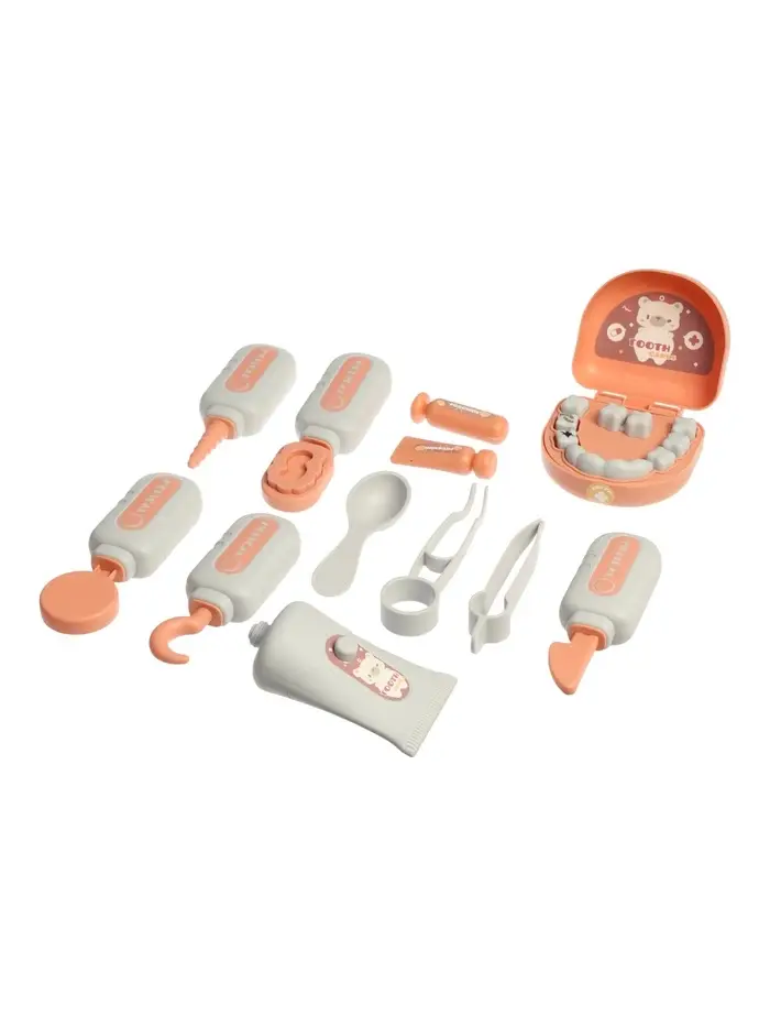 - 12 предметов в комплекте для полноценной игры в стоматолога;