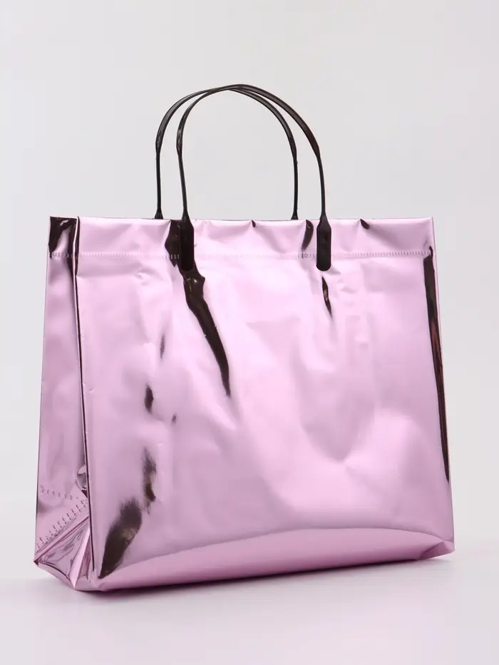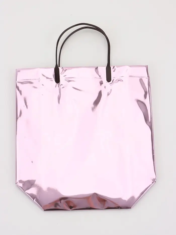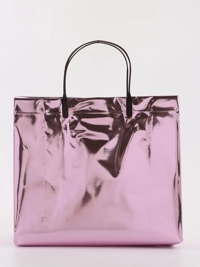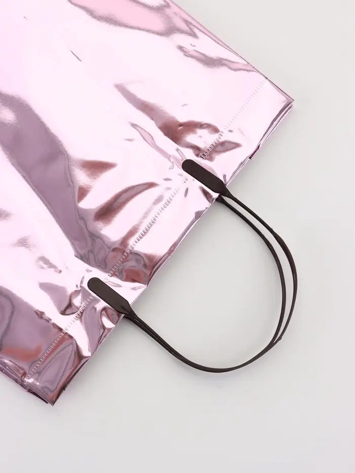 Пакет подарочный ПВХ, голография, розовый, пластиковая ручка, 26×22.5×10 см