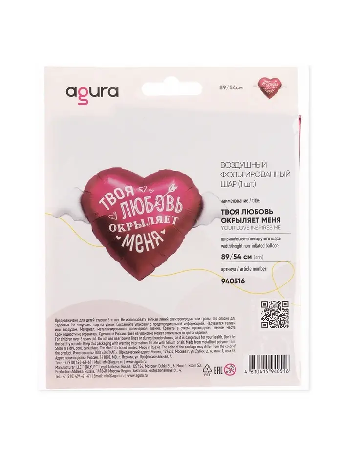Воздушный шар фольгированный 35" «Твоя любовь окрыляет»