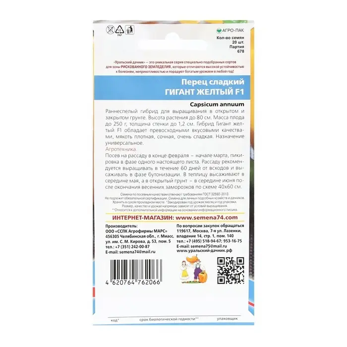 Семена Перец сладкий "Гигант Жёлтый", F1, 20 шт