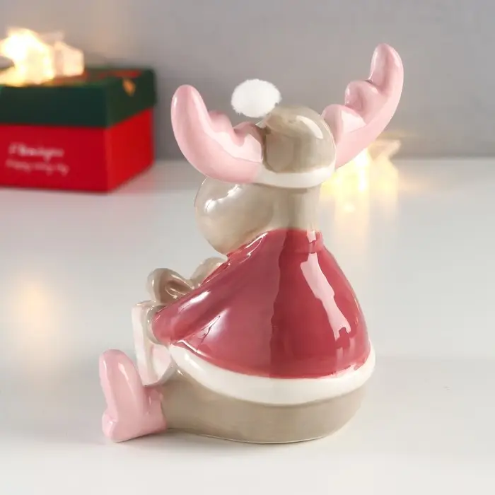 Сувенир керамика "Лосик в очках, с подарком" цветной 12,5х9,2х11 см