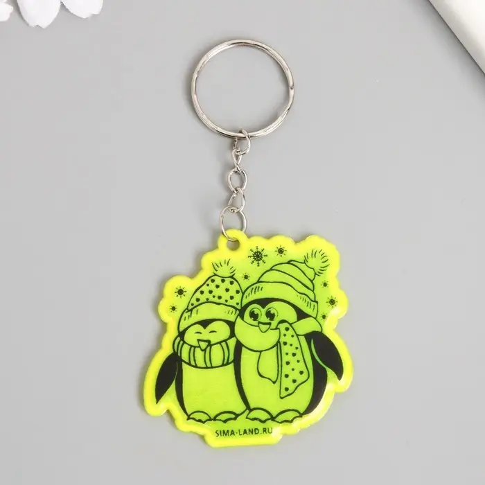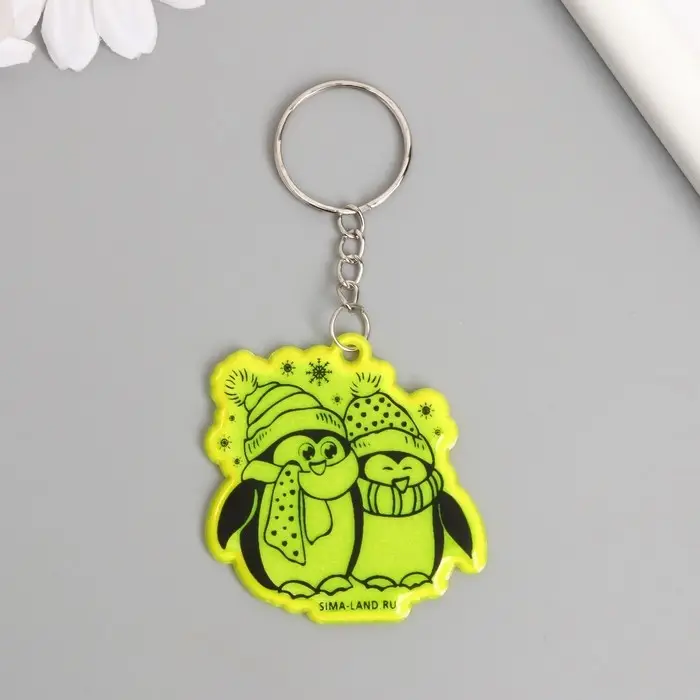 Брелок пластик светоотражающий "Пингвины - давай погреемся" 5х4,8 см