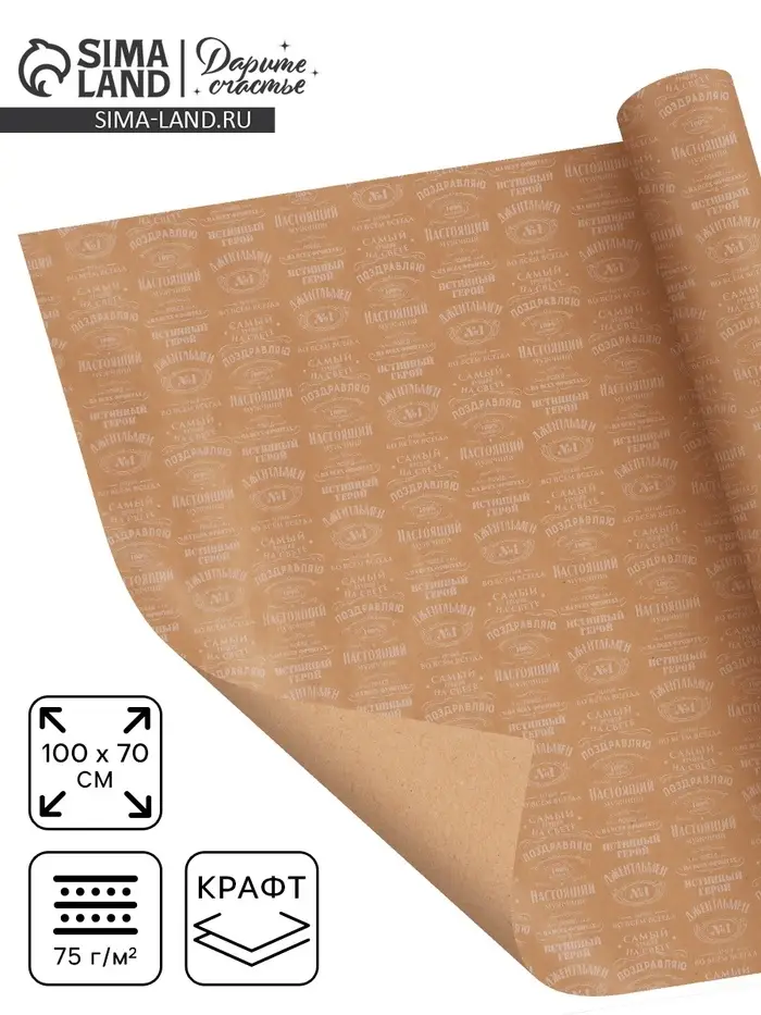 Бумага упаковочная крафт «Поздравляю», 70×100 см