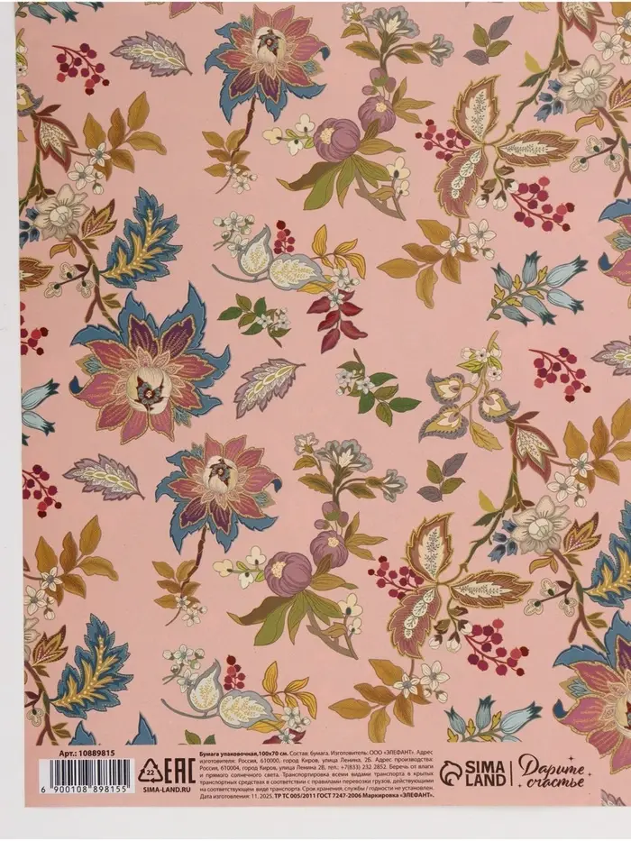 Бумага упаковочная глянцевая двухсторонняя «Цветы», 70 × 100 см