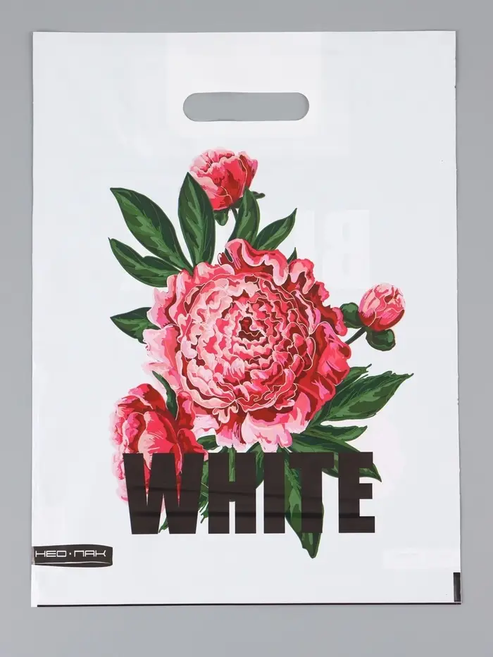 Пакет "Пионы , полиэтиленовый с вырубной ручкой 30х40 см, 60 мкм