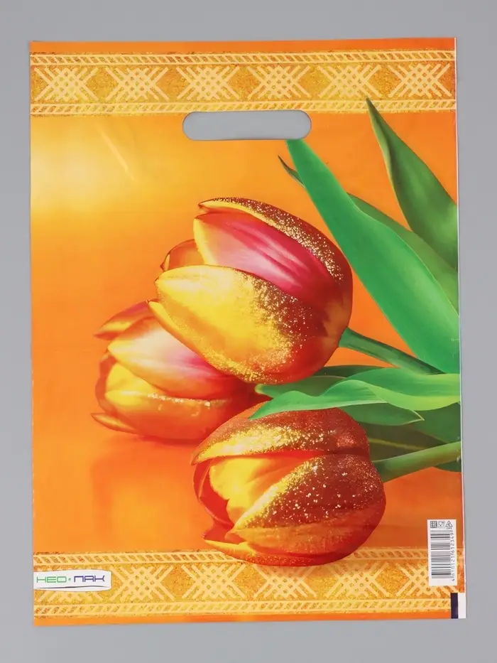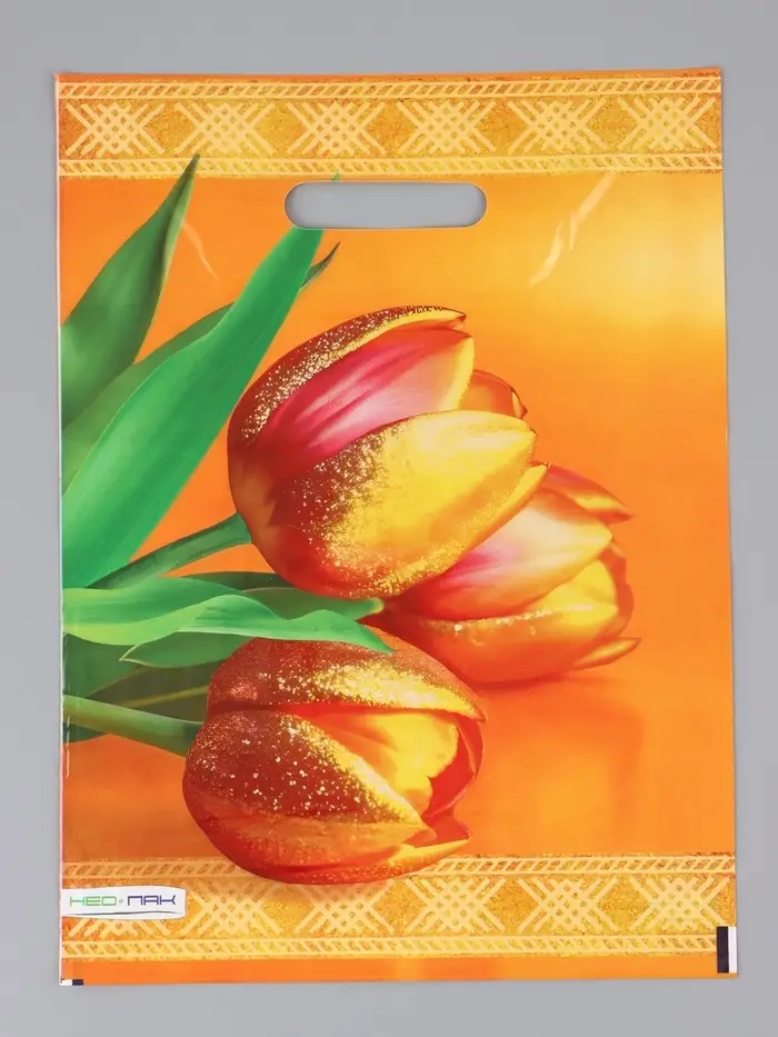Пакет "Желтые тюльпаны, полиэтиленовый с вырубной ручкой 30х40 см, 60 мкм