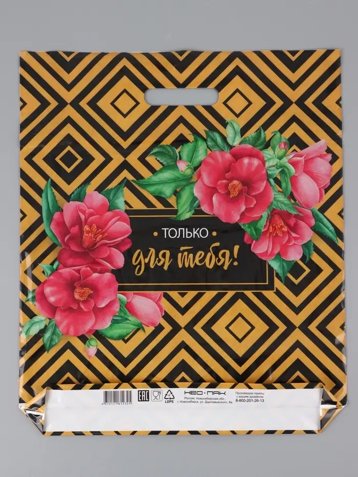 Пакет "Подарочный, полиэтиленовый с вырубной ручкой 38х45 см, 60 мкм