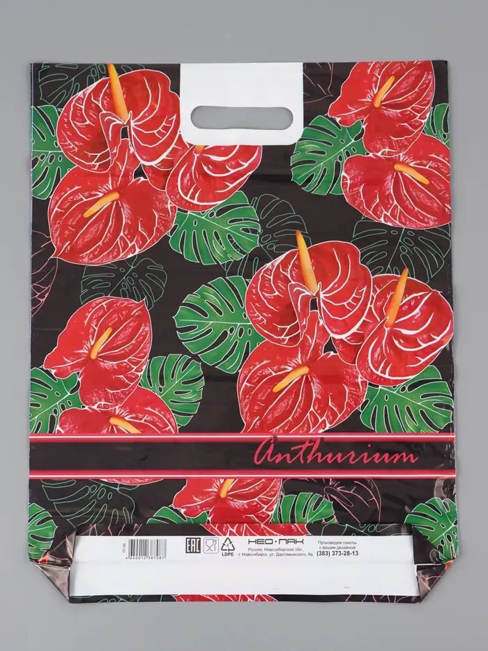 Пакет "Антуриум , полиэтиленовый с вырубной ручкой 38х47 см, 60 мкм
