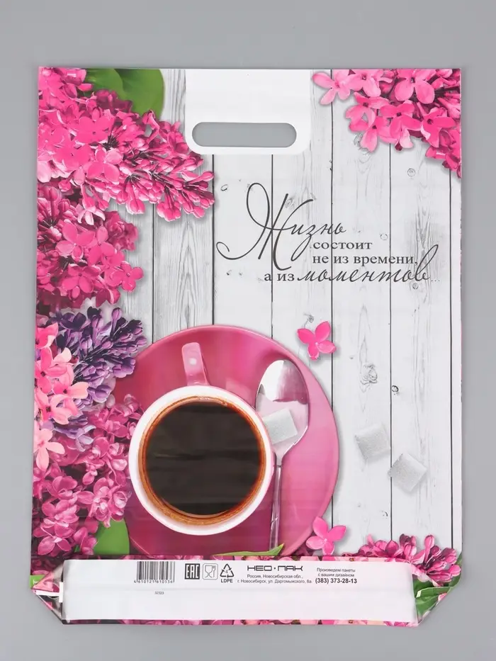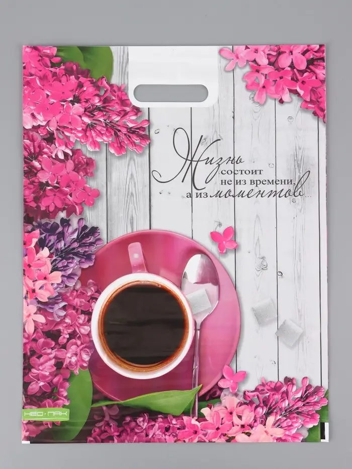 Пакет "Ветка сирени , полиэтиленовый с вырубной ручкой, 38х47 см, 60 мкм