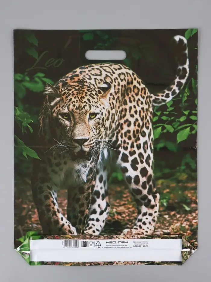 Пакет "Леопард, полиэтиленовый с вырубной ручкой 41х51 см, 80 мкм