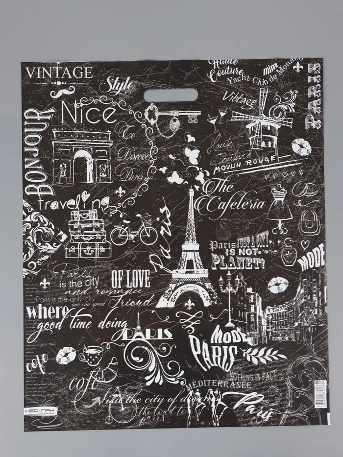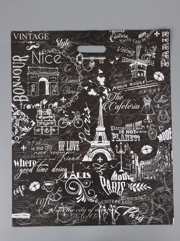 Пакет "Париж, полиэтиленовый с вырубной ручкой 50х60 см, 100 мкм