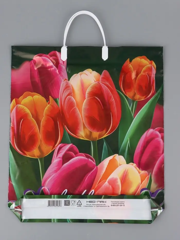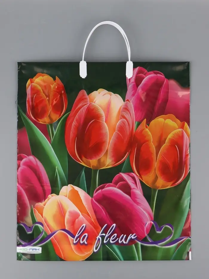 Пакет "Яркие тюльпаны, полиэтиленовый с вырубной ручкой, пласт. 38х44 см, 90 мкм