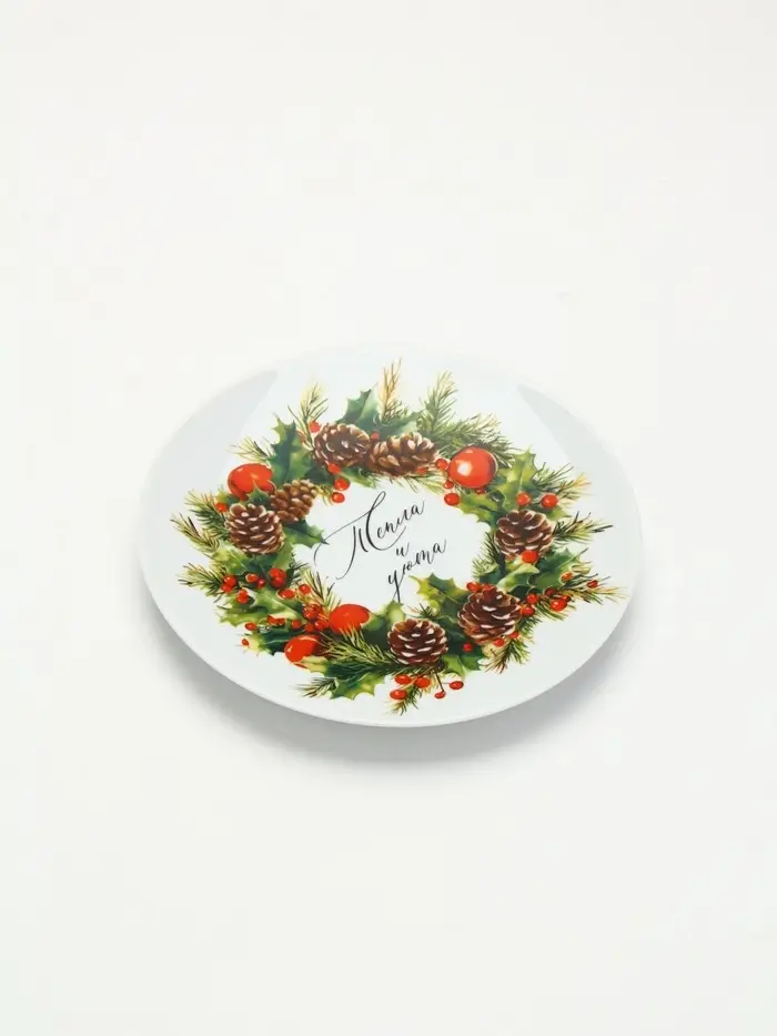 Новогодняя стеклянная тарелка — идеальный выбор для сервировки стола.