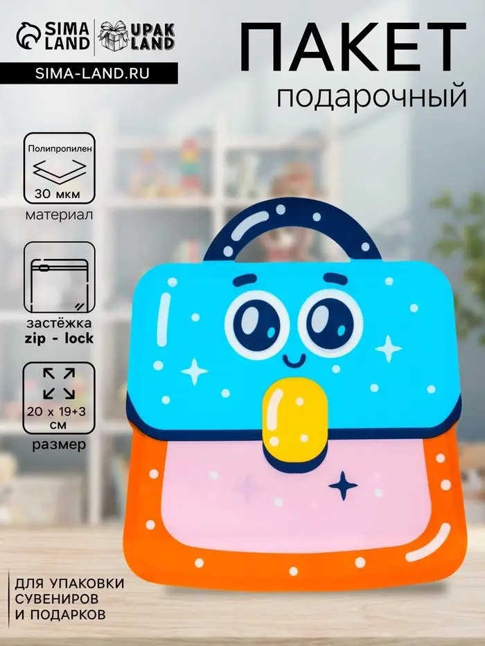 Пакет подарочный, «Портфель», с zip-lock застежкой, 20×19+6 см